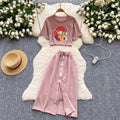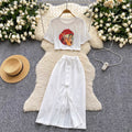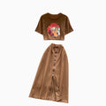 Painting Printed T-shirt & Split Skirt Set