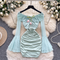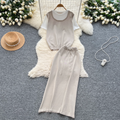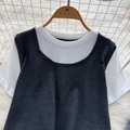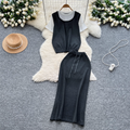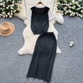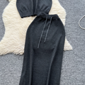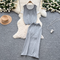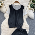Patchwork Knitwear & Drawstring Skirt 2Pcs