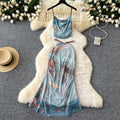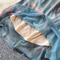 Pleated Vest & Slim Skirt Printed 2Pcs