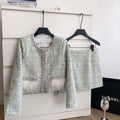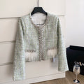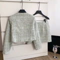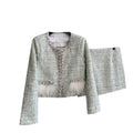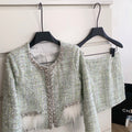 Rhinestone Studded Tweed Blazer & Shorts 2Pcs