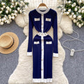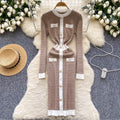 Round Collar Single-breasted Knit Dress