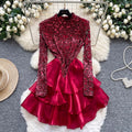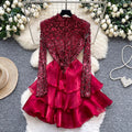 Sequined Patchwork Layered Cake Dress