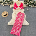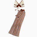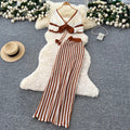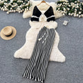 Short Outwear & Striped Skirt Knitted 2Pcs