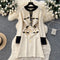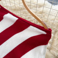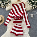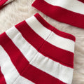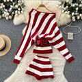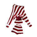 Slant-neckline Knitwear & Shorts Striped 2Pcs