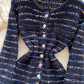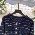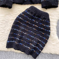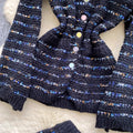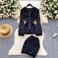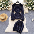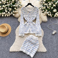 Striped Cardigan & Hip-wrapping Skirt 2Pcs