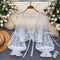 V-neck Embroidered Lace-up Dress