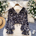 V-neck Leopard Printed Chiffon Shirt