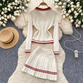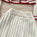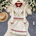 Vintage Cardigan & Pleated Skirt 2Pcs