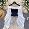 • Features: Bow tie; Patchwork