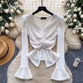 • Features: V-neck; Solid color