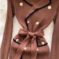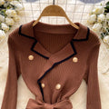 Vintage Lapeled Double-breasted Dress