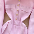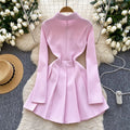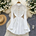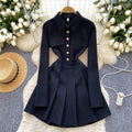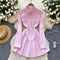 Vintage Lapeled Pleated Shirt Dress