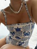 Blue Ocean Element Printed One-piece Swimwear