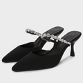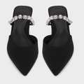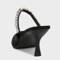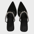 Black Satin Rhinestone Heeled Sandals