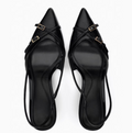 Pointed-toe Cross Buckled Black Sandals