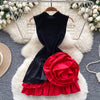 High-end 3D Flower Halter Dress