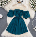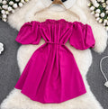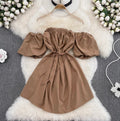 Solid Color Ruffled A-line Dress