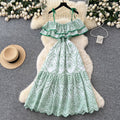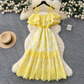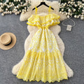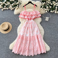Off-shoulder Ruffled Embroidered Slip Dress