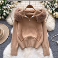 Furry Hooded Patchwork Cardigan