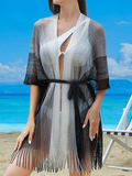 Fringed Hollowed-knit Gradient Color Beach Dress