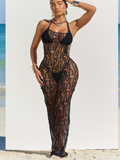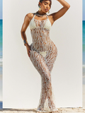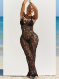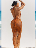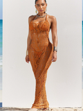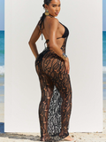 Halter Bikini & Hollowed Backless Dress Beach 3Pcs