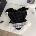 Courtly Polka Dot Lace-trim Top