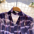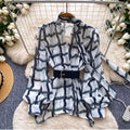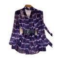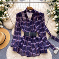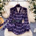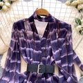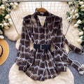 V-neck Plaid Shirt with Belt