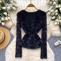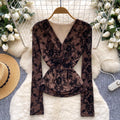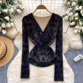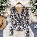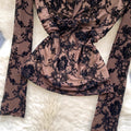 Vintage Knotted V-neck Mesh Shirt