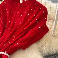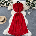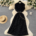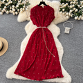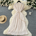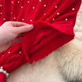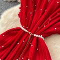 Premium Beaded Lace-up Pleated Dress