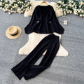 Bat-sleeve Cardigan & Wide-leg Trousers 2Pcs