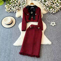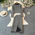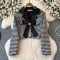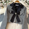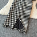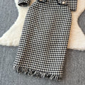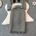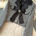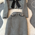 Bow Cardigan&Skirt Houndstooth 2Pcs