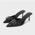 Buckle Decorated Black Half-slipper Sandals