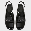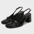 BuckledRound-toe Chunky Open Heel Mules