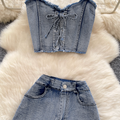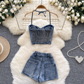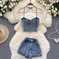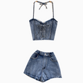 Chic Halter Top & Shorts Denim 2Pcs