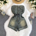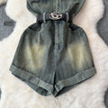 Chic Off-shoulder Sequined Denim Romper