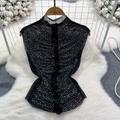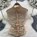 Chic Shiny Beaded Pleated Shirt