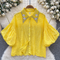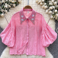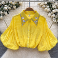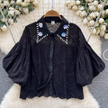 Courtly Hollowed Crochet Sequined Shirt