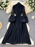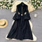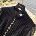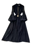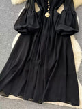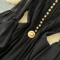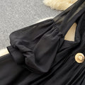 Elegant Metal Button Black Chiffon Dress
