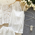 Crochet Shirt & Vest & Shorts 3Pcs