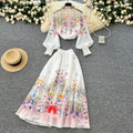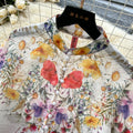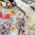 Flared-sleeve Shirt & Skirt Floral 2Pcs
