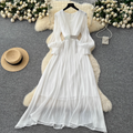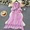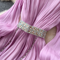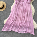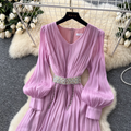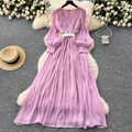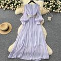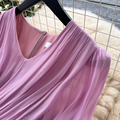French Style V-neck Glossy Chiffon Dress
