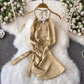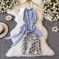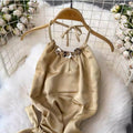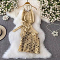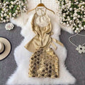 Halter Satin Top & Sequined Skirt 2Pcs