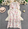 Hollowed Crochet Floral Lace Dress