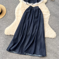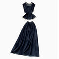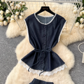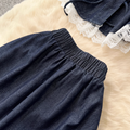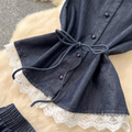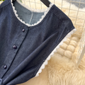 Lace Patchwork Denim Vest & Skirt 2Pcs