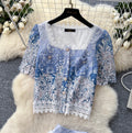 Lace Patchwork Embroidery Cardigan & Skirt 2Pcs