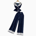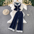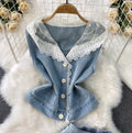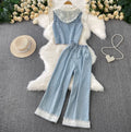 Lace Patchwork Vest & Jeans 2Pcs