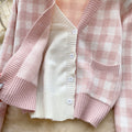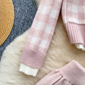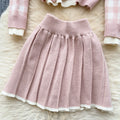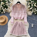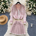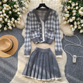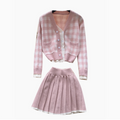 Lace-trim Cardigan&Skirt Plaid 2Pcs