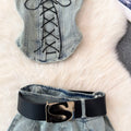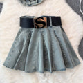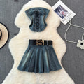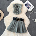 Lace-up Top & Pleated Skirt Denim 2Pcs