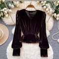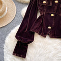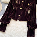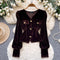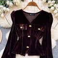 Metal Button V-neck Suede Top