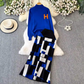 Monogrammed Sweater & Plaid Skirt 2Pcs